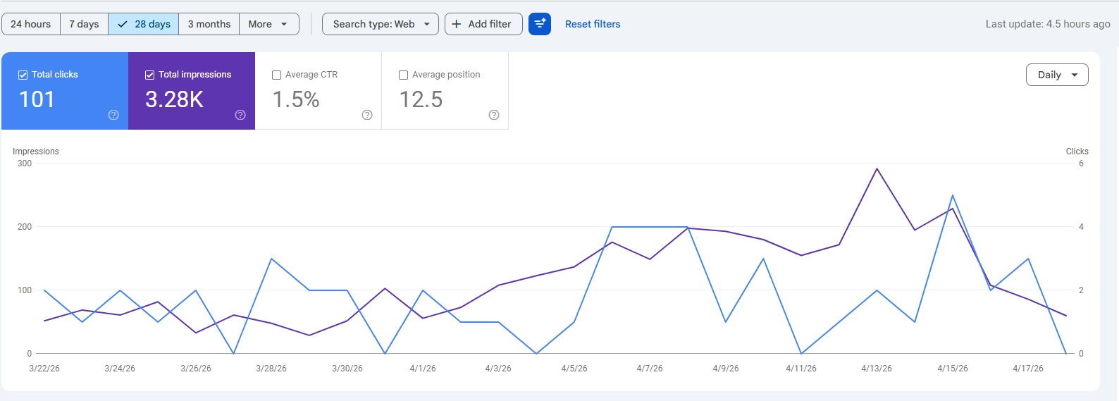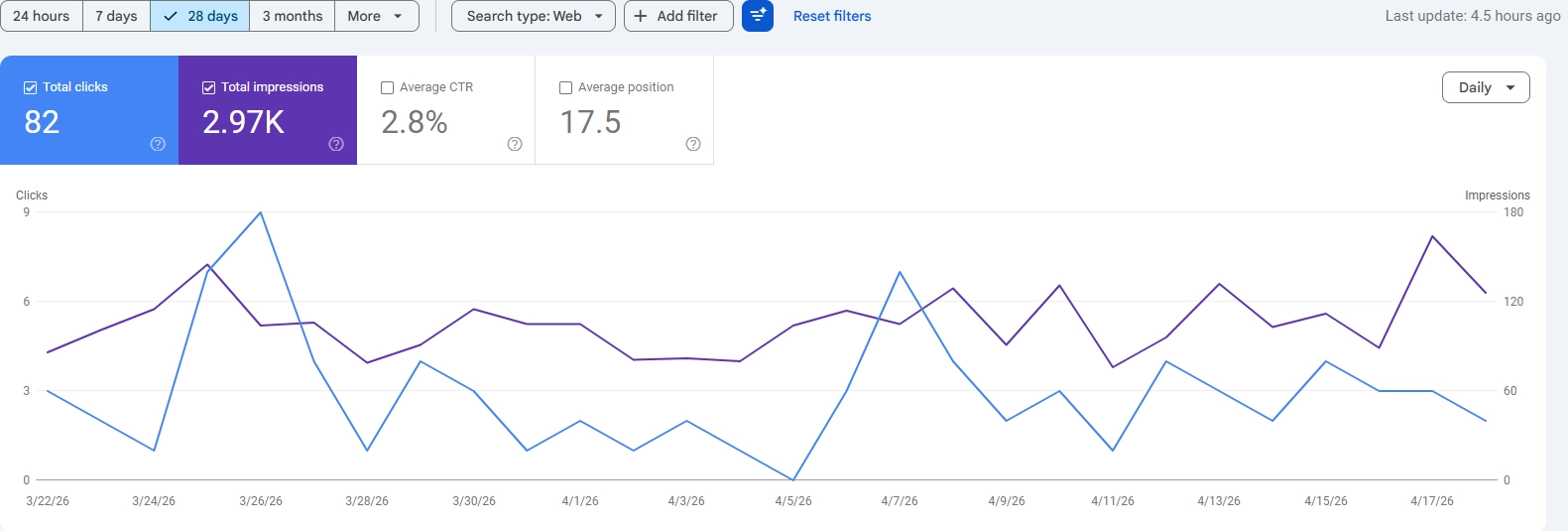 Google Search Console performance for a residential painter client site