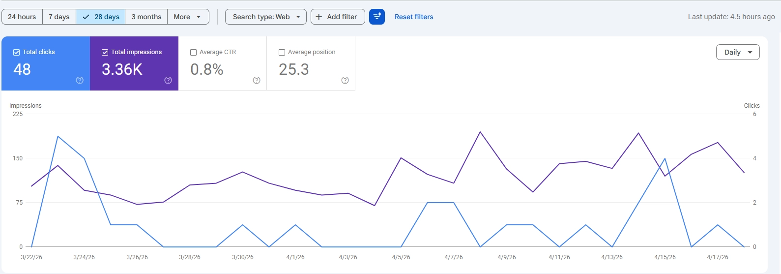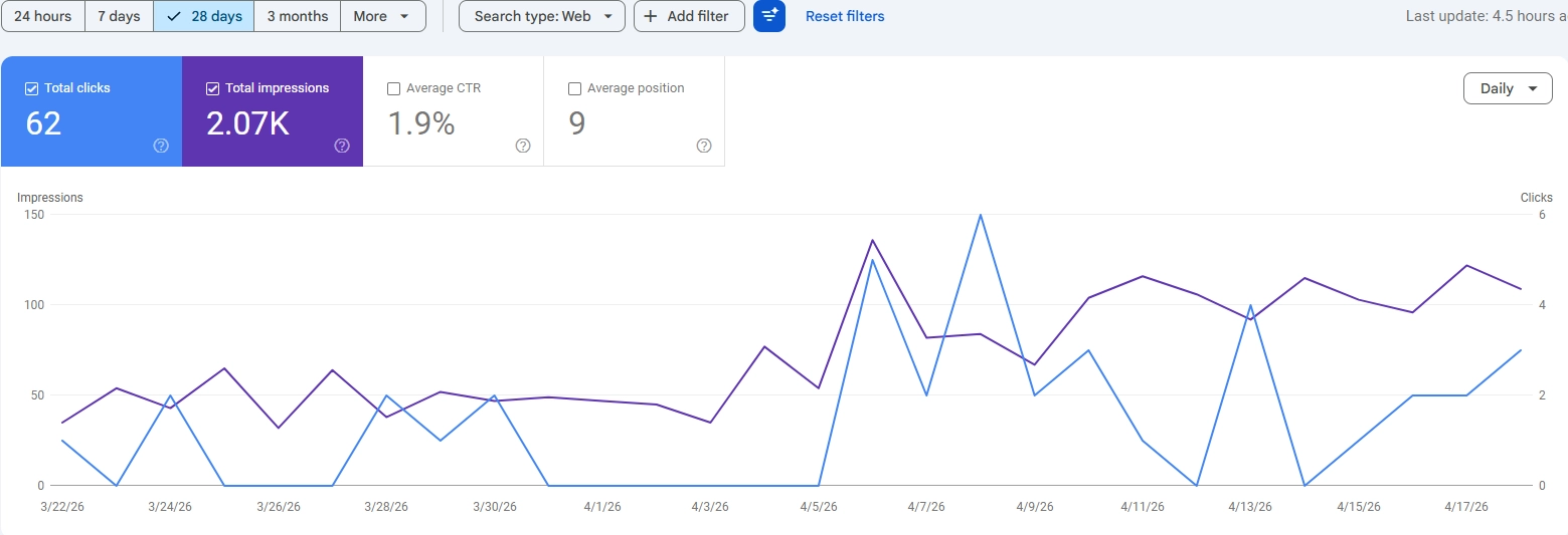 Google Search Console performance for a residential painter client site